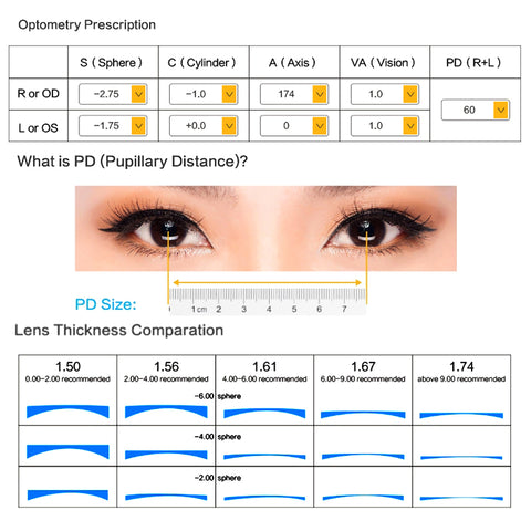 B. The frame on the pic is just for demonstration. If you need this glasses with frame, you can choose one in my store and send me the frame link. Please do tell your data so that we can make the correct glasses for you.